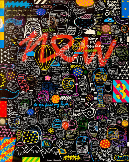 told with spray, acrylic and marker about a ludic, original and colourful