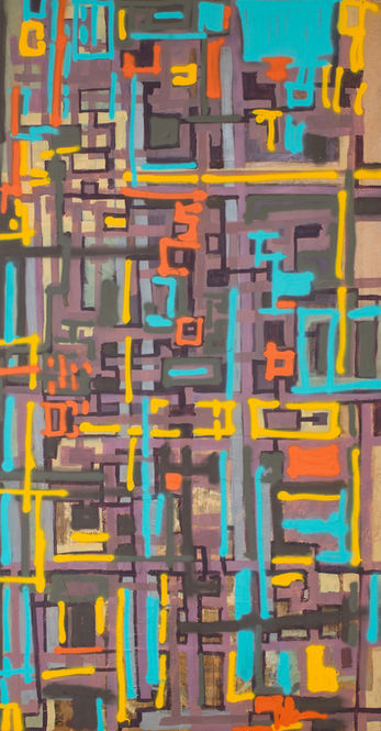 Title: Part 2: Weaving and mapping_the futureYear: 2021Size: 273.8x120x5cmTechnique: found paper, varnish, linseed oil, sprat paint on board with support frameDescription: Series Cleopatra, hold your breath