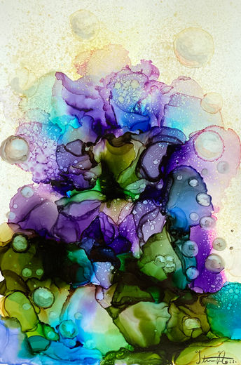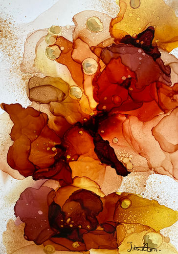 She moved to Kyoto at the age of 20 because of her love for Japanese culture and cities with old histories. There, she worked as a florist and then, entered the world of hairdressers at the age of 25. She is currently working as a freelance hairdresser, bridal hair and makeup artist, and kimono stylist. One day, she encountered alcohol ink art and started teaching herself painting. From that moment on, she began to spread out on to A4-sized canvases all the things that she had locked deep inside her heart. Things such as the reality of opposing truths: Light and shadow, yin and yang, beginning and end. Things that are invisible to the eye, but which are indeed there: scents, wind strength, emotions that cannot be expressed in word, anger that makes the hands shake, indigestible thoughts, the difficulty of being alive...She says that she has no real expectations towards her work. She just wants to draw and “throw up”, that's all.