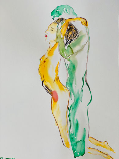 Monika - Moniqqques is born In Czech Republick. She has been painting since she could hold a pen and she never stopped. Her focus currently lies on figurative art. She likes to capture feelings, relationships, sex, deep emotions of couples during their intimacy and connection