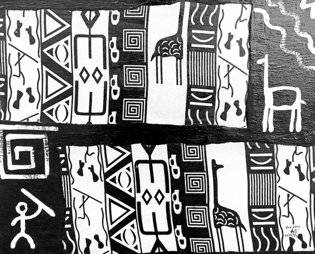 Mohamed Lamine Sylla, with roots in cabinetmaking and lighting design, uses recycled wood skillfully painted with oil. Advocating contradictions and eco-responsibility, his techniques fuse diverted objects, paintings, and furniture into thoughtful three-dimensional paintings. His works invite a wandering introspection on love, spirituality and environmental protection.