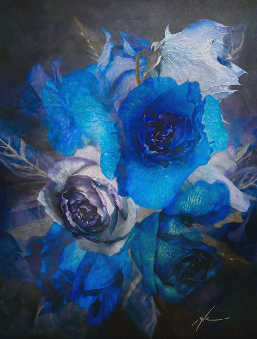 The heart that blossoms quietly and beautifully when illuminated by existence of the blue roses