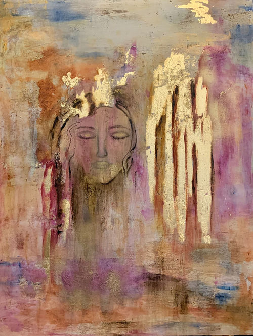 Title: Recordando el ayer Year Completed: 2023 Size: 1m x 80 cm Technical: Mixed media, acrylic, texture, gold leaf Price: $500 Description In this work I was inspired by moments we have lived, nostalgia for yesterday