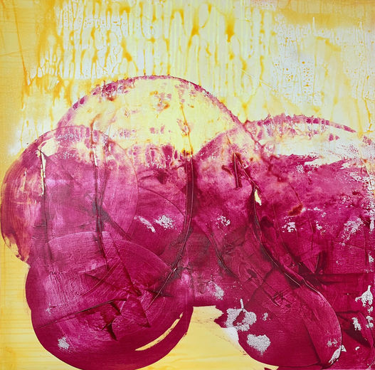 When we renovated our home, my husband asked me to create an artwork for it, what I did. I started with smaller canvas paintings, tried different techniques and grew with my experiences. Visitors (family and friends) were impressed and pushed/encouraged me to „come out“, to present my artwork to the public. So the theme of this exhibition is also the theme of my life as being an artist.