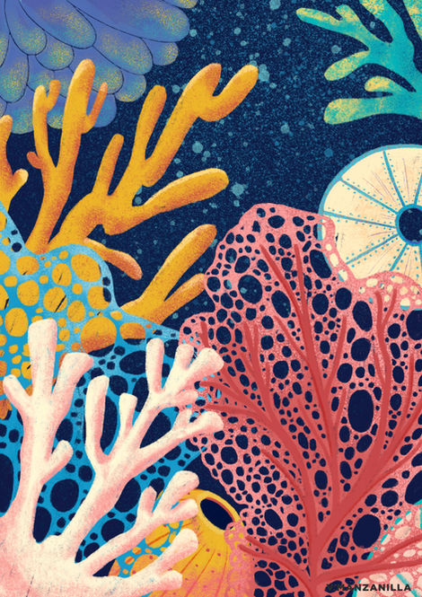 Title: Underwater Year 2020 Digital Paint- Pencils brushes 4961x7016 Resolution 300dpi Artistic statement Underwater came where I was in a dark moment in my year. I had to escape, so I went to an island in Thailand, where I learn and dive for the first time. In that moment I met a new world of life, colors and forms that I haven’t seen before, and I fell in love, it became a new hobby and passion. So Underwater I’m trying to transmit that beauty, that vibrant colors and a happiness that I felt in that moment, where everything slows down and peacefully helped me to get out of that dark moment. Artist: Victoria Manzanilla