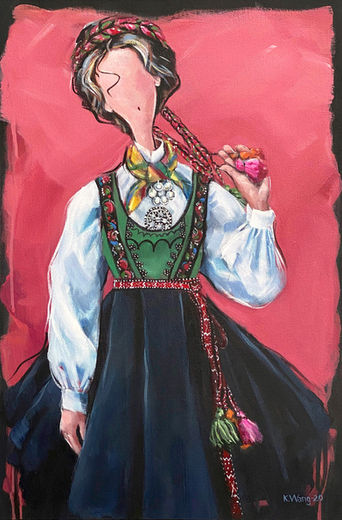 Kari Wang I am a norwegian painter, living and working from my studio in Kolbotn, outside Oslo. I have my art related education from Westerdals - Oslo School of arts, Communication and Tecnology. In addition I have taken several art related courses through all my life. I have worked more than 20 years as Art Director and graphic designer, until I realized my dream and became a full time artist in 2010. Through my artistic carreer, “the woman” has always been a favorite object. In 2014 I started with the theme “Folklore” and focused on women´s traditional and handmade costumes. About 70 % of norwegian women own a “bunad\", and they use them often! This bunad use is on UNESCO’s representative list of intangible cultural heritage. I express myself figuratively with acrylic on canvas. I paint with colourful brushes and have a kind of calligraphic style. One of my characteristics is to give the image an illusion of speed and movement. I have participated in many separate and collective exhibitions in Norway the last years, but also abroad.