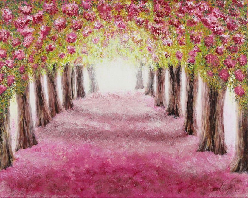 Title: Spring InspirationYear: 2020Technique: acrylic on canvas, dry brushSize: 40 x 50 cmPink spring brings the best emotions and washes away any stagnant thoughts.