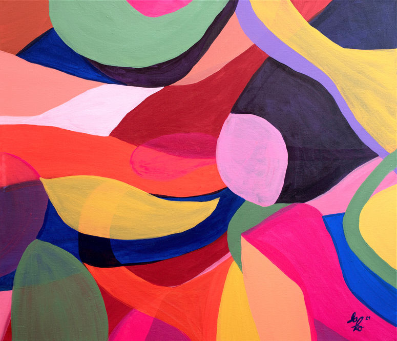 In October 2021 I started my new series. I have been living on a greek island for a few months. For me, it‘s getting involved with a new country, a different culture and mentality, and also a completely different lifestyle. It is a tangible process - connected with all its ups and downs, which is taking place within me. I am allowed to grow inwardly, to put things and thoughts in order, to let go of the old and to receive and create the new. I work mainly with intensive colour moods and forms. I express what moves me deeply inside. One layer overlays the other and yet sometimes the earlier one shines through. This is also how I feel about life. Sometimes things need time and patience to heal and through this something wonderful and new can arise again.